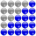 The fact that the th triangular number equals can be illustrated using a visual proof.[1] For every triangular number , imagine a "half-rectangle" arrangement of objects corresponding to the triangular number, as in the figure below. Copying this arrangement and rotating it to create a rectangular figure doubles the number of objects, producing a rectangle with dimensions , which is also the number of objects in the rectangle. Clearly, the triangular number itself is always exactly half of the number of objects in such a figure, or: . The example follows:
