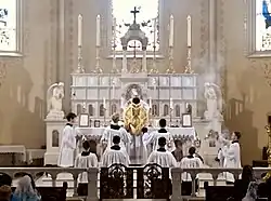 Elevation of the Chalice during consecration at a Missa Cantata