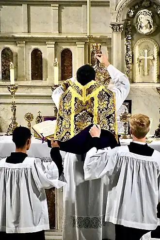 Ad orientem (direction the priest stands, as opposed to Versus populum)