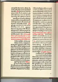 Three different printings of Pius V's Roman Missal, with minor variations, appeared in 1570, a folio and a quarto edition in Rome and a folio edition in Venice. A reproduction of what is considered to be the earliest, referred to therefore as the editio princeps, was produced in 1998.[36] In the course of the printing of the editio princeps, some corrections were made by pasting revised texts over parts of the already printed pages.[37] There were several printings again in the following year 1571, with various corrections of the text.[38]