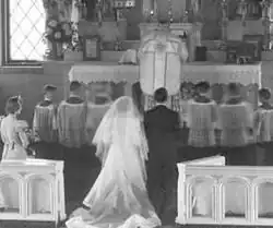 Following repeated rumours that the use of the Tridentine Mass would be liberalised, the Pope issued a motu proprio called Summorum Pontificum on 7 July 2007,[107] together with an accompanying letter to the world's bishops.[108] The declaring that "the Roman Missal promulgated by Paul VI is the ordinary expression of the lex orandi (law of prayer) of the Catholic Church of the Latin rite. Nevertheless, the Roman Missal promulgated by St. Pius V and reissued by St. John XXIII is to be considered as an extraordinary expression of that same 'Lex orandi'".[109] He further stated that "the 1962 Missal ... was never juridically abrogated". He replaced with new rules those of Quattuor Abhinc Annos on use of the older form: essentially, authorization for using the 1962 form for parish Masses and those celebrated on public occasions such as a wedding is devolved from the local bishop to the priest in charge of a church, and "any priest of the Latin rite" may use the 1962 Roman Missal in "Masses celebrated without the people", a term that does not exclude attendance by other worshippers, lay or clergy.[110] While requests by groups of Catholics wishing to use the Tridentine liturgy in parish Masses are to be dealt with by the parish priest (or the rector of the church) rather than, as before, by the local bishop, the Pope and Cardinal Darío Castrillón stated that the bishops' authority is not thereby undermined.[f]