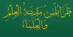 The city of Tripoli is also given the title of "City of Knowledge and Scholars" (Arabic: طرابلس مدينة العلم والعلماء, romanized: Ṭarābulus madīnat al-ʿilm wa-l-ʿulamāʾ).[13][14][15][16]