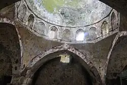 About 35 monuments from the Mamluk city have survived to the present day, including mosques, madrasas, khanqahs, hammams, and caravanserais, many of them built by local Mamluk amirs.[26] Major buildings in Mamluk Tripoli included six congregational mosques (the Mansouri Great Mosque, al-Aattar, Taynal, al-Uwaysiyat, al-Burtasi, and al-Tawbat Mosques). Sultan al-Ashraf Khalil (r. 1290–93) founded the city's first congregational mosque in memory of his father (Qalawun), in either late 1293 or 1294 (693 AH).[30][31] Six madrasas were later built around the mosque.[31][32][33] The Mamluks did not fortify the city with walls but restored and reused a Crusader citadel on the site.[25] In addition, there were two quarter mosques (Abd al-Wahed and Arghoun Shah), and two mosques that were built on empty land (al-Burtasi and al-Uwaysiyat). Other mosques incorporated earlier structures (churches, khans, and shops). Mamluk Tripoli also included 16 madrasas of which four no longer exist (al-Zurayqiyat, al-Aattar, al-Rifaiyah, and al-Umariyat). Six of the madrasas concentrated around the Grand Mosque. Tripoli also included a Khanqah, many secular buildings, five Khans, three hammams (Turkish baths) that are noted for their cupolas. Hammams were luxuriously decorated and the light streaming down from their domes enhances the inner atmosphere of the place.