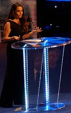 On the January 28, 2013, episode of Raw, Stratus was announced as a WWE Hall of Fame inductee as part of the 2013 class, Stratus chose Stephanie McMahon to induct her into the Hall of Fame in April.[88] The following year, Stratus inducted Lita into the WWE Hall of Fame.[89] On August 16, 2016, Stratus appeared on WWE Network special WWE 24: Women's Evolution, discussing the history of the women back in her era known as the Attitude Era and also her rivalry with Lita.