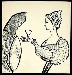 Kurwenal appears in the women's quarters ("Auf auf! Ihr Frauen!") and announces that the voyage is coming to an end. Isolde warns Kurwenal that she will not appear before the King if Tristan does not come before her as she had previously ordered and drink atonement to her. When Tristan arrives, Isolde reproaches him about his conduct and tells him that he owes her his life and how his actions have undermined her honour, since she blessed Morold's weapons before battle and therefore she swore revenge. Tristan first offers his sword but Isolde refuses; they must drink atonement. Brangäne brings in the potion that will seal their pardon; Tristan knows that it may kill him, since he knows Isolde's magic powers ("Wohl kenn' ich Irlands Königin"). The journey almost at its end, Tristan drinks and Isolde takes half the potion for herself. The potion seems to work, but instead of death, it brings relentless love ("Tristan!" "Isolde!"). Kurwenal, who announces the imminent arrival on board of King Marke, interrupts their rapture. Isolde asks Brangäne which potion she prepared and Brangäne replies, as the sailors hail the arrival of King Marke, that it was not poison; rather, she has substituted a love potion in order to save Isolde from herself.