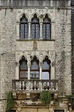 In 1123, Trogir was conquered and almost completely demolished by the Saracens. However, Trogir recovered in a short period to experience powerful economic prosperity in the 12th and the 13th centuries, with some autonomy under Venetian leadership. In 1242, King Béla IV of Hungary found refuge there as he fled the Mongols, who were unable to storm the island city.[8] In the 13th and the 14th centuries, members of the Šubić family were most frequently elected dukes by the citizens of Trogir; Mladen III (1348), according to the inscription on the sepulchral slab in the Cathedral of Trogir called "the shield of the Croats", was one of the most prominent Šubićs. In Dalmatian, the city was known as Tragur.