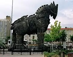 A replica of the Trojan Horse, used in the 2004 film Troy, stands today in Çanakkale, Turkey, the modern-day location of the city of Troy.