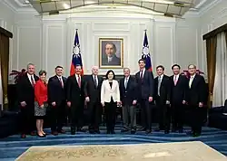 During summer of 2015, Tsai embarked on a visit to the United States and met a number of US policy makers including Senators John McCain and Jack Reed.[54] In her speech addressing Taiwanese diaspora on the east coast of the United States, Tsai signaled a willingness to cooperate with the rising Third Party coalition in Taiwan in the incoming general election.[55] On 14 November, Tsai's campaign announced that she had chosen Chen Chien-jen as DPP vice presidential candidate.[56] On 16 January 2016, Tsai won the presidential election, beating her opponent Eric Chu by a margin of 25.04%.[41] Tsai was inaugurated as president on 20 May 2016.[57]