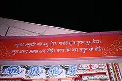 When Tulsidas recited this couplet, the idol of Krishna holding the flute and stick in hands changed to the idol of Rama holding the bow and arrow in hands.[57][64][65] Some authors have expressed doubts on the couplet being composed by Tulsidas.[57][64]