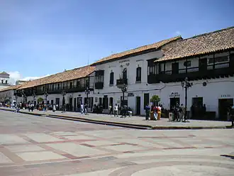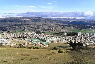 Tunja (Spanish pronunciation: [ˈtuŋxa]) is a municipality and city on the Eastern Ranges of the Colombian Andes, in the region known as the Altiplano Cundiboyacense, 130 km northeast of Bogotá. In 2018 the municipality had a population of 172,548.[1] It is the capital of Boyacá department and the Central Boyacá Province. Tunja is an important educational centre of well-known universities. In the time before the Spanish conquest of the Muisca, there was an indigenous settlement, called Hunza, seat of the hoa Eucaneme, conquered by the Spanish conquistadors on August 20, 1537. The Spanish city was founded by captain Gonzalo Suárez Rendón on August 6, 1539, exactly one year after the capital Santafé de Bogotá. The city hosts the most remaining Muisca architecture: Hunzahúa Well, Goranchacha Temple and Cojines del Zaque.