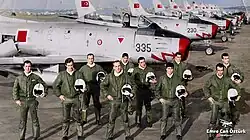 The Air Machinist School (Hava Makinist Okulu) was reorganized as Aircraft Maintenance School (Hava Uçak Bakım Okulu) on 2 January 1950[22] to unite schools responsible for training non-pilot Air Force personnel.[21] In 1950 it also was decided to upgrade the Air Force fleet through the inclusion of jets.[21] Eight pilots were sent to the United States for jet pilot training.[21] They graduated in 1951 and started training jet pilots in the Turkish Air Force.[21] In the same year, the 9th Fighter Wing (9’uncu Ana Jet Üssü) was founded in Balıkesir as Turkey's first fighter wing; the 191st, 192nd, and 193rd squadrons being the first ones which were established.[21] Further training in the United States followed, usually involving jet manufacturers. In 1951 the Air Force Academy was formed with integrating some air schools in Eskişehir and its first academic year started on 1 October 1951.[23] In 1956 the Hava Eğitim Kolordu Komutanlığı (Air Education Corps Command) was founded and all education was united under this command. The command was renamed as Hava Eğitim Komutanlığı (Air Education Command) in 1957.[21]