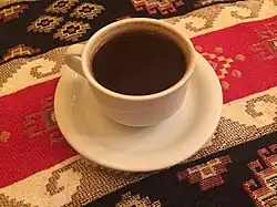 ![]() A cup of Turkish coffee, served from a copper cezve | |