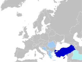 Countries where Turkish is recognised as a minority language and co-official in at least one municipality