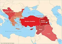 Map of the main subgroups of Turkish dialects across Southeast Europe and the Middle East.