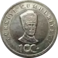 In the transition period between January 2005 and December 2008, the second Turkish lira was officially called Yeni Türk lirası ("New Turkish lira").[8] The letter "Y" in the currency code was taken from the Turkish word yeni, meaning new. It was officially abbreviated "YTL" and subdivided into 100 new kuruş (yeni kuruş). Starting in January 2009, the "new" marking was removed from the second Turkish lira, its official name becoming just "Turkish lira" again, abbreviated "TL". All obverse sides of current banknotes have portraits of Mustafa Kemal Atatürk. The reverse sides of all coins (except for ₺1 commemorative coins) have portraits of Mustafa Kemal Atatürk. Since 2012, 9 different ₺1 circulating commemorative coins were introduced.