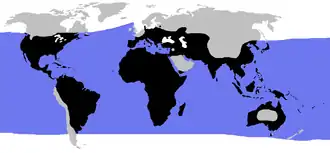 The word turtle is borrowed from the French word tortue or tortre 'turtle, tortoise'.[3] It is a common name and may be used without knowledge of taxonomic distinctions. In North America, it may denote the order as a whole. In Britain, the name is used for sea turtles as opposed to freshwater terrapins and land-dwelling tortoises. In Australia, which lacks true tortoises (family Testudinidae), non-marine turtles were traditionally called tortoises, but more recently turtle has been used for the entire group.[4]