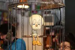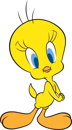 Tweety is a fictional cartoon character, a yellow canary bird in the Warner Bros. Looney Tunes and Merrie Melodies series of animated cartoons.[3][4] His characteristics are based on Red Skelton's famous "Junior the Mean Widdle Kid".[5] He appeared in 46 cartoons during the golden age, made between 1942 and 1964.[6]