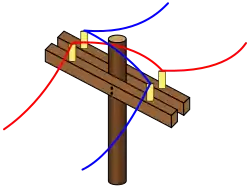 As electrical power distribution became more commonplace, this measure proved inadequate. Two wires, strung on either side of cross bars on utility poles, shared the route with electrical power lines. Within a few years, the growing use of electricity again brought an increase of interference, so engineers devised a method called wire transposition, to cancel out the interference.