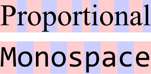A proportional typeface, also called variable-width typeface, contains glyphs of varying widths, while a monospaced (non-proportional or fixed-width) typeface uses a single standard width for all glyphs in the font. Duospaced fonts are similar to monospaced fonts, but characters can also be two character widths instead of a single character width.