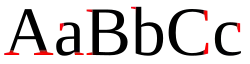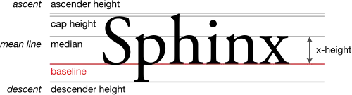 In the Latin, Greek and Cyrillic (sometimes collectively referred to as LGC) scripts, one can refer to the distance from the baseline to the top of regular lowercase glyphs (mean line) as the x-height, and the part of a glyph rising above the x-height as the ascender. The distance from the baseline to the top of the ascent or a regular uppercase glyphs (cap line) is also known as the cap height.[11] The height of the ascender can have a dramatic effect on the readability and appearance of a font. The ratio between the x-height and the ascent or cap height often serves to characterize typefaces.