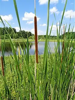Although Typha are native wetland plants, they can be aggressive in their competition with other native species.[20] They have been problematic in many regions in North America, from the Great Lakes to the Everglades.[18] Native sedges are displaced and wet meadows shrink, likely as a response to altered hydrology of the wetlands and increased nutrient levels. An introduced or hybrid species may be contributing to the problem.[21] Control is difficult. The most successful strategy appears to be mowing or burning to remove the aerenchymous stalks, followed by prolonged flooding.[22] It may be more important to prevent invasion by preserving water level fluctuations, including periods of drought, and to maintain infertile conditions.[18]