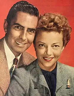 Power was one of Hollywood's most eligible bachelors until he married French actress Annabella (born Suzanne Georgette Charpentier) on July 14, 1939. They met on the 20th Century-Fox lot around the time they starred together in Suez. Previously, he had been involved with Sonja Henie,[28] Claire Trevor,[29] Joan Woodbury,[30] and Evie Abbott.[31] In an A&E biography, Annabella said that Zanuck "could not stop Tyrone's love for me, or my love for Tyrone." To move her out of Power's life, Zanuck offered Annabella films in Europe. She refused to leave. At this point, Zanuck blacklisted her.[32]