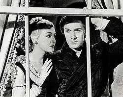 Tyrone Edmund Power III[2][3] (May 5, 1914 – November 15, 1958) was an American actor. From the 1930s to the 1950s, Power appeared in dozens of films, often in swashbuckler roles or romantic leads. His better-known films include Jesse James, The Mark of Zorro, Marie Antoinette, Blood and Sand, The Black Swan, Prince of Foxes, Witness for the Prosecution, The Black Rose, and Captain from Castile. Power's own favorite film among those in which he starred was Nightmare Alley.[4]