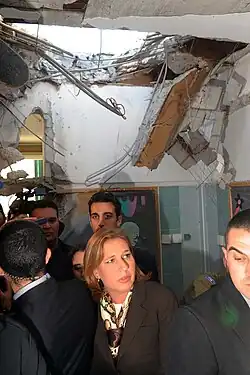 During the 2008–2009 Israel–Gaza conflict, Livni was criticized by Arab League Chairman Amre Moussa who said that "I am greatly surprised by, and I reject, the words of the Israeli foreign minister (Livni), who asks: 'Is there a humanitarian crisis? There is no humanitarian crisis in Gaza'."[86] Livni was quoted as saying "Israel has been supplying comprehensive humanitarian aid to the [Gaza] strip... and has even been stepping this up by the day."[87] Israel would later allow a daily three-hour truce during the offensive to enable aid to flow through a humanitarian corridor.[88] Livni declared that the 2009 Gaza military offensive had "restored Israel's deterrence. ... Hamas now understands that when you fire on its citizens it responds by going wild – and this is a good thing."[89]
