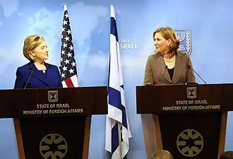 - ^ Natasha Mozgovaya (2 June 2009). "Livni, Clinton voice support for gay community in Israel and U.S". Haaretz. Archived from the original on 23 November 2010. Retrieved 25 April 2010.