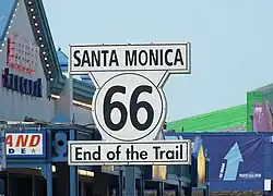 U.S. Route 66 or U.S. Highway 66 (US 66 or Route 66) was one of the original highways in the United States Numbered Highway System. It was established on November 11, 1926, with road signs erected the following year.[4] The highway ran from Chicago, Illinois, through Missouri, Kansas, Oklahoma, Texas, New Mexico and Arizona before terminating in Santa Monica, California, covering a total of 2,448 miles (3,940 km).[5]