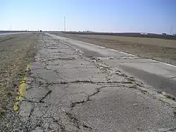 In 1930, between the Illinois cities of Springfield and East St. Louis, US 66 was shifted farther east to what is now roughly Interstate 55 (I-55). The original alignment, marked as Temporary 66, followed the current Illinois Route 4 (IL 4).[30]