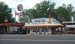 Notable buildings include the art deco–styled U-Drop Inn, constructed in 1936 in Shamrock, in Wheeler County east of Amarillo, Texas, listed on the National Register of Historic Places.[25][26] A restored Magnolia fuel station is also located in Shamrock as well as Vega, in Oldham County, west of Amarillo.[27]