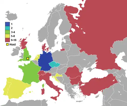 England (hosts)[a]  Bulgaria  Italy  Russia