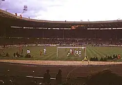 The aggregate attendance of 1,276,000 and average attendance of 41,158 per game were the highest for the European Championship (in its 16-team format) until the 2012 tournament.[2] However, these numbers were based on the number of tickets sold rather than the number of spectators in the ground, which was often significantly lower.[48] The large number of empty seats in most of the games not involving England was blamed on a number of factors: a lack of travelling fans from most of the other nations concerned, a lack of interest among locals for games not involving England, kick-offs before 5:00 pm that made it hard for children at school and adults at work to attend, steep ticket prices, and UEFA's policy of only selling tickets in blocks (where each block consisted of a set from each of three price bands).[49]