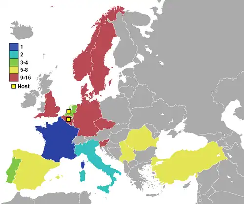 Belgium Co-host 14 July 1995 3 (1972, 1980, 1984)