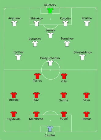^ ab"Full-time Spain-Russia"(PDF). Union of European Football Associations. 10 June 2008. Archived from the original(PDF) on October 30, 2013. Retrieved 9 June 2012.