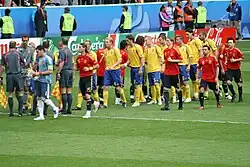 Following a 4–1 win over Russia in their first game, Spain qualified for the quarter-finals with a 2–1 victory against Sweden in their second. They clinched the top spot after Russia beat Greece later that day, condemning the title holders to last place in the group. The second quarter-final berth was to be decided by the Sweden–Russia match, with Sweden only needing to avoid defeat to go through. However, Russia scored a goal in each half to beat Sweden 2–0 and qualify for the quarter-finals. Meanwhile, despite going behind towards the end of the first half, Spain scored two second half goals, one coming three minutes before full time, to become the third team in the tournament to qualify for the quarter-finals with a 100% group stage record.