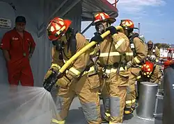 The fires were brought under control relatively quickly (when compared with previous carrier flight deck fires), but 27 sailors were killed, and an additional 314 sailors were injured. The fire destroyed 15 aircraft, and the resulting damage forced Enterprise to put in for repairs at Pearl Harbor Naval Shipyard, Hawaii, primarily to repair the flight deck's armored plating.[49] On 1 March 1969, repairs to the ship were completed and the ship proceeded on her scheduled western Pacific (WESTPAC) deployment to Vietnam and the Tonkin Gulf. These destinations would be delayed by events in the eastern Sea of Japan.[50]