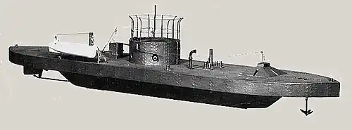 USS Monitor was an ironclad warship built for the United States Navy during the American Civil War and completed in early 1862, becoming the first such ship commissioned by the Navy.[a] Monitor played a central role in the Battle of Hampton Roads on 9 March under the command of Lieutenant John L. Worden, where she fought the casemate ironclad CSS Virginia (built on the hull of the scuttled steam frigate USS Merrimack) to a stalemate. The design of the ship was distinguished by its revolving turret, which was designed by American inventor Theodore Timby; it was quickly duplicated and established the monitor class and type of armored warship built for the American Navy over the next several decades.