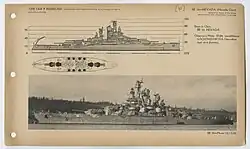 - ^ The 5-inch (127 mm)/51 cal guns were soon reduced to only 12 because of their overly wet positions. In the late 1920s, 8 × 5 in (127 mm)/25 cal anti-aircraft guns (8 x 1) were added. In 1942, all were removed and replaced by 16 × 5 in (127 mm)/38 cal DP mounts (8×2), and 32 × 40 mm AA (8×4) and 40 × 20 mm AA (40×1) were added. See Fitzsimons 1978, p. 1982.