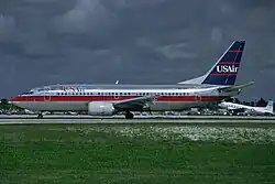 A USAir Boeing 737-300 at Washington National Airport in 1986.