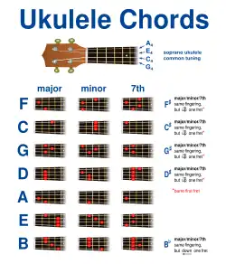 Chart of common soprano ukulele chords.