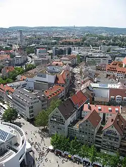 Some parts of the city were rebuilt in the plain and simple style of the 1950s and 1960s, but most parts of the historic old town have been restored.[7] Due to its almost complete destruction in 1944, the Hirschstraße part of the city primarily consists of modern architecture. Ulm experienced substantial growth in the decades following World War II, with the establishment of large new housing projects and new industrial zones. In 1967, Ulm University was founded, which proved to be of great importance for the development of the city. Particularly since the 1980s, the transition from classical industry towards the high-tech sector has accelerated, with, for example, the establishment of research centres of companies like Daimler, Siemens and Nokia and a number of small applied research institutes near the university campus. The city today is still growing, forming a twin city of 170,000 inhabitants together with its neighbouring Bavarian city of Neu-Ulm, and seems to benefit from its central position between the cities of Stuttgart and Munich and thus between the cultural and economic hubs of southern Germany.