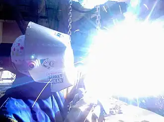 UV radiation is also produced by electric arcs. Arc welders must wear eye protection and cover their skin to prevent photokeratitis and serious sunburn.