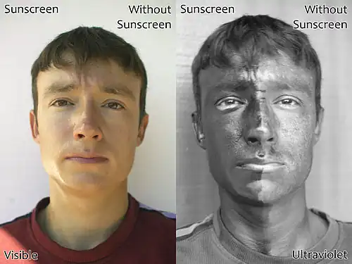 86. ^ Stephens TJ, Herndon JH, Colón LE, Gottschalk RW (February 2011). "The impact of natural sunlight exposure on the UV‑B – sun protection factor (UVB-SPF) and UVA protection factor (UVA-PF) of a UV‑A / UV‑B SPF 50 sunscreen". J. Drugs Dermatol. 10 (2): 150–155. PMID 21283919.