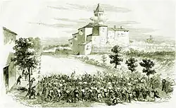 Giuseppe Garibaldi was elected in 1871 in Nice at the National Assembly where he tried to promote the annexation of his hometown to the newborn Italian unitary state, but he was prevented from speaking.[55] Because of this denial, between 1871 and 1872 there were riots in Nice, promoted by the Garibaldini and called "Niçard Vespers",[56] which demanded the annexation of the city and its area to Italy.[57] Fifteen Nice people who participated in the rebellion were tried and sentenced.[58]