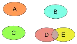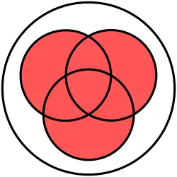 In set theory, the union (denoted by ∪) of a collection of sets is the set of all elements in the collection.[1] It is one of the fundamental operations through which sets can be combined and related to each other. A nullary union refers to a union of zero () sets and it is by definition equal to the empty set.