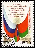 The Treaty on the Creation of a Union State of Russia and Belarus was signed on 8 December 1999.[21] The intention was to achieve a federation like the Soviet Union, with a common head of state, legislature, flag, coat of arms, anthem, constitution, army, citizenship and currency. The Union was ratified by the Russian State Duma on 22 December 1999 and the National Assembly of Belarus on 26 January 2000. On the latter date the Treaty and the Union came into effect.[22]