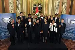In August 2017, six members of UNASUR—Argentina, Brazil, Chile, Colombia, Paraguay and Peru—joined in forming the Lima Group, a coalition of Western Hemisphere nations that repudiates the Venezuela government of Nicolás Maduro as antidemocratic.[32] In February 2018, Maduro was disinvited from the Summit of the Americas hosted by Peru (held in Lima in April 2018). In response, Bolivia's president Evo Morales urged UNASUR to defend Venezuela, stating "UNASUR should call an emergency meeting and enforce the sovereignty of a brotherly people." Morales acceded to the rotating role of president pro tempore of UNASUR on 17 April 2018.[31]