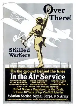 Although it considered creation of a separate aviation department to act as the centralized authority for decision-making, both the War and the Navy Departments opposed it, and on October 1, 1917, Congress instead legalized the existence of the APB and changed its name to the "Aircraft Board", transferring its functions from the Council of National Defense to the secretaries of War and the Navy.[9] Even so, the Aircraft Board in practice had little control over procurement contracts and functioned mostly as an information provider between industrial, governmental, and military entities. Nor did the "Equipment Division" of the Signal Corps exercise such control. Established by the Office of the Chief Signal Officer (OCSO) as one of the operating components of the Aviation Section, its task was to unify and coordinate the various agencies involved but its head was a commissioned former member of the APB who did nothing to create any effective coordination.[10] Moreover, the largely wood and fabric airframe designs of World War I did not lend themselves to being made with the mass production methods of the automotive industry, which used considerable amounts of metallic materials instead, and the priority of mass-producing spare parts was neglected. Though individual areas within the aviation industry responded well, the industry as a whole failed. Efforts to mass-produce European aircraft under license largely failed because the aircraft, made by hand, were not amenable to the more precise American manufacturing methods. At the same time the Aeronautical Division of the OCSO was renamed the Air Division with continued responsibility for training and operations but with no influence on acquisition or doctrine. In the end the decision-making process in aircraft procurement was badly fragmented and production on a large scale proved impossible.[10]